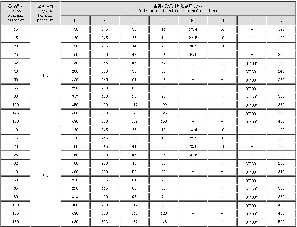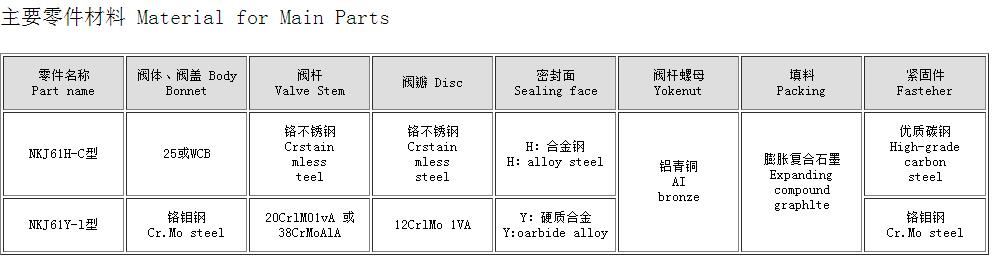 NKJ61型阀门主要性能规范