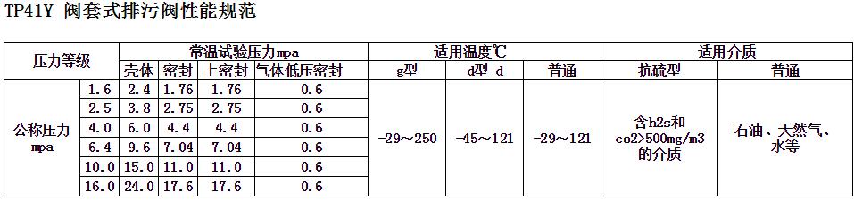 TP41Y型阀套式排污油田阀是一种新型排污截至阀。它采用了阀芯,笼型结构,阀型上开设有平衡孔,阀芯与阀座采用,,所以该阀门具有开启平稳,轻便,密封可靠等优点。特别是该阀门采用双笼型套结构,把介质通道与密封分开设置,保护了密封垫,使该阀门具有更好的耐冲蚀性能及排污性能,大大延长了使用寿命,其使用寿命是原排污阀的两倍以上。